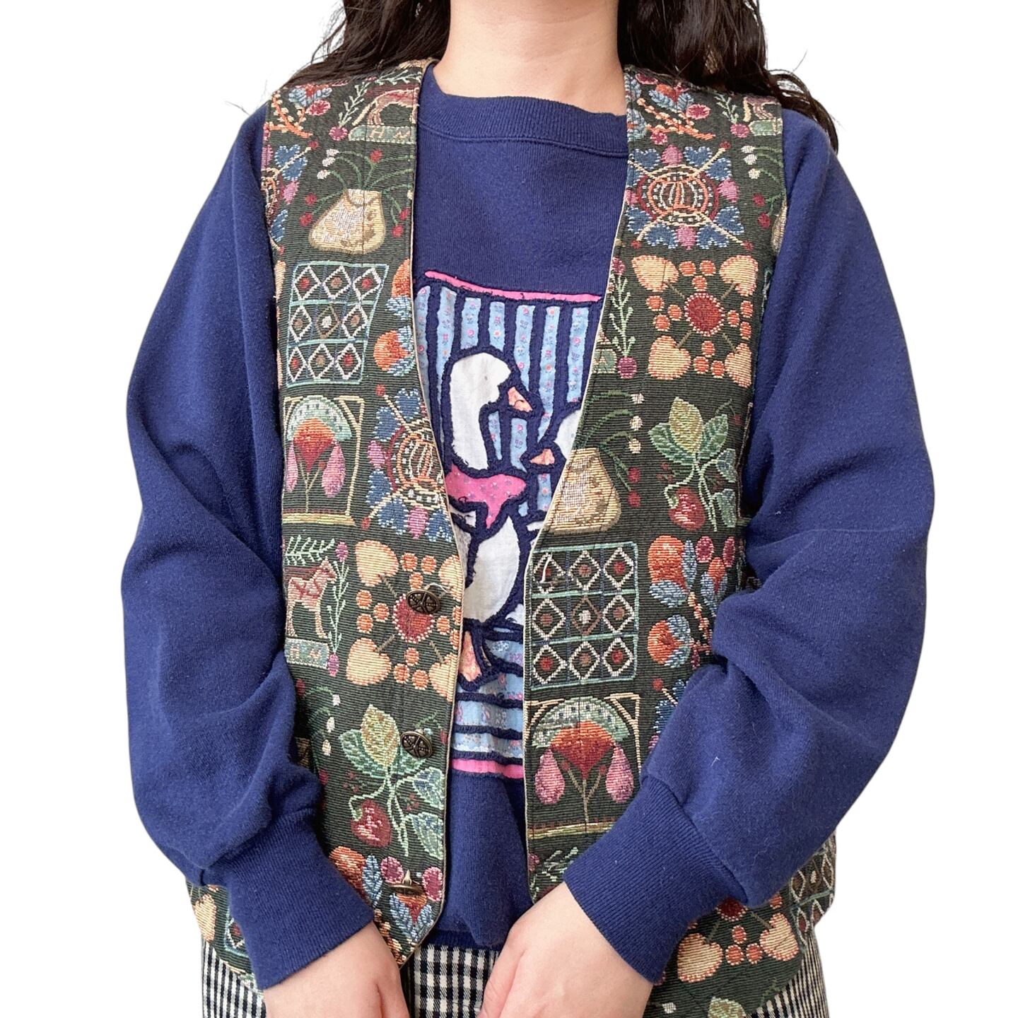 ゴブラン素材のカントリーで温かみのあるデザインのベストです。
